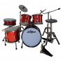 Includes floor tom , snare drum with stand , bass drum pedal, bass drum , stool, tom toms, ride cymbal with stand , crash symbal with stand , hi hat cymbal with stand and 2 drum sticks